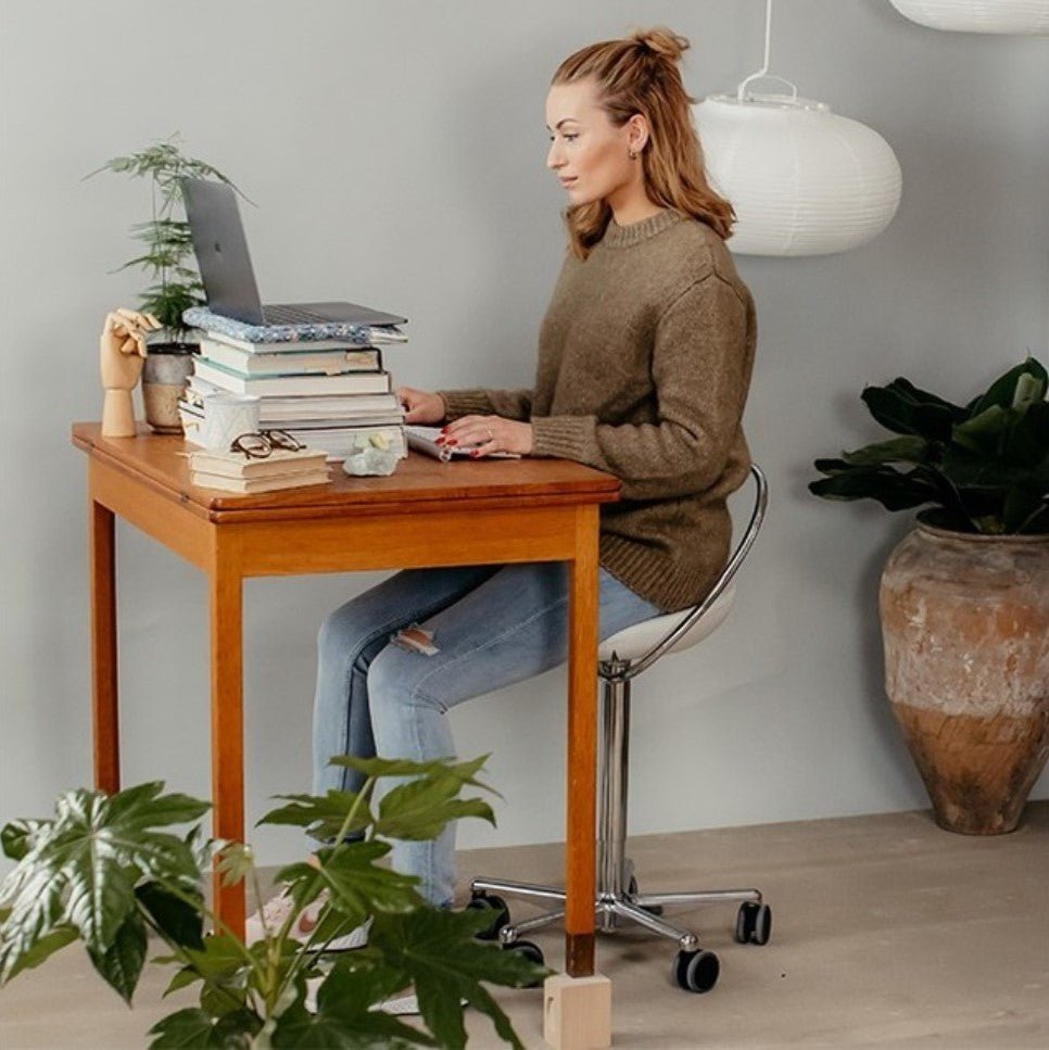 Variera din position Byt mellan att sitta och stå under dagen. Detta minskar belastningen på kroppen och hjälper dig att hålla energinivåerna uppe. Kombinera gärna din Dynamostol med ett höj- och sänkbart skrivbord.